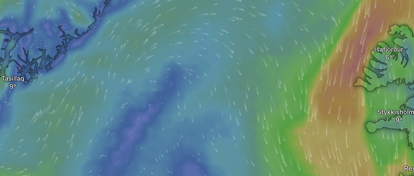 Durch unseren frühen Aufbruch in Tasiilaq sind wir einem Sturm vor der Küste Grönlands entkommen. Allerdings wartet am Mittwochabend ein zweiter Sturm vor der Küste Islands auf uns. Dank guter Winde und guter Sicht hoffen wir, auch diesen umgehen zu können.